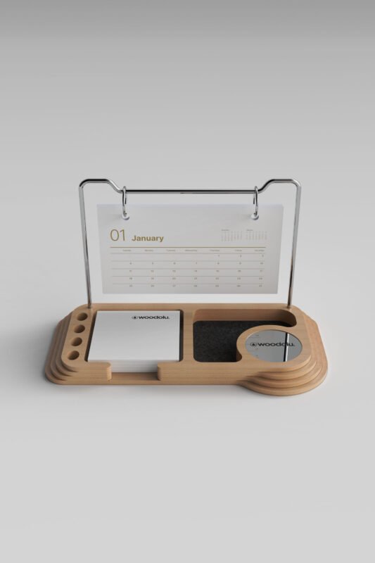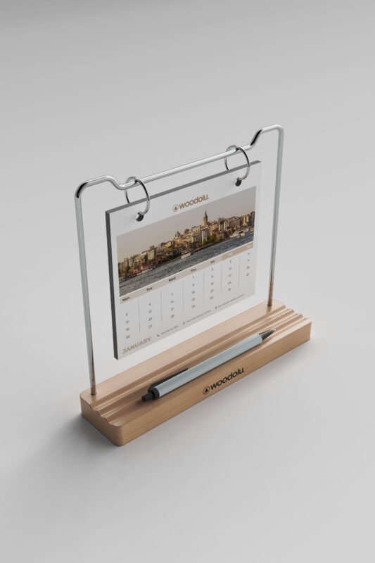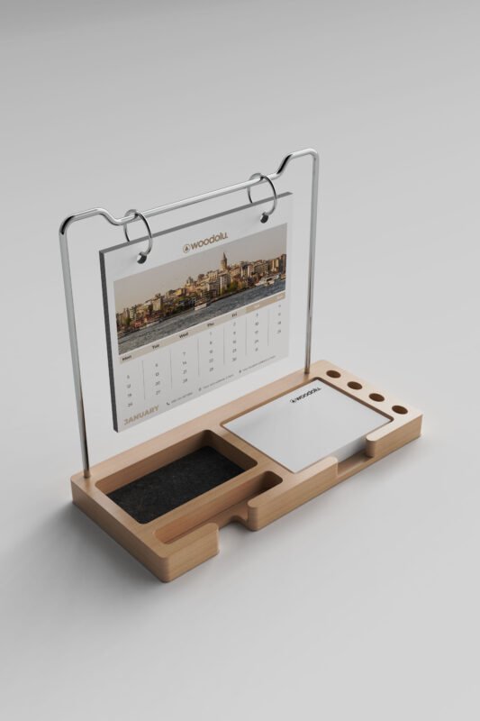 Doğal ahşabın sıcaklığını modern tasarımla buluşturan, şık ve işlevsel masa takvimleri.